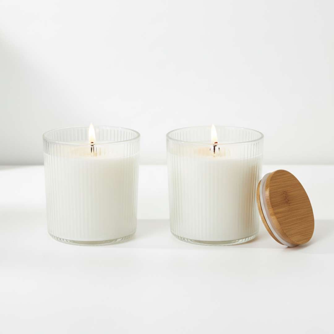 זוג צנצנות זכוכית לתצוגת נרות ואחסון בטוח.